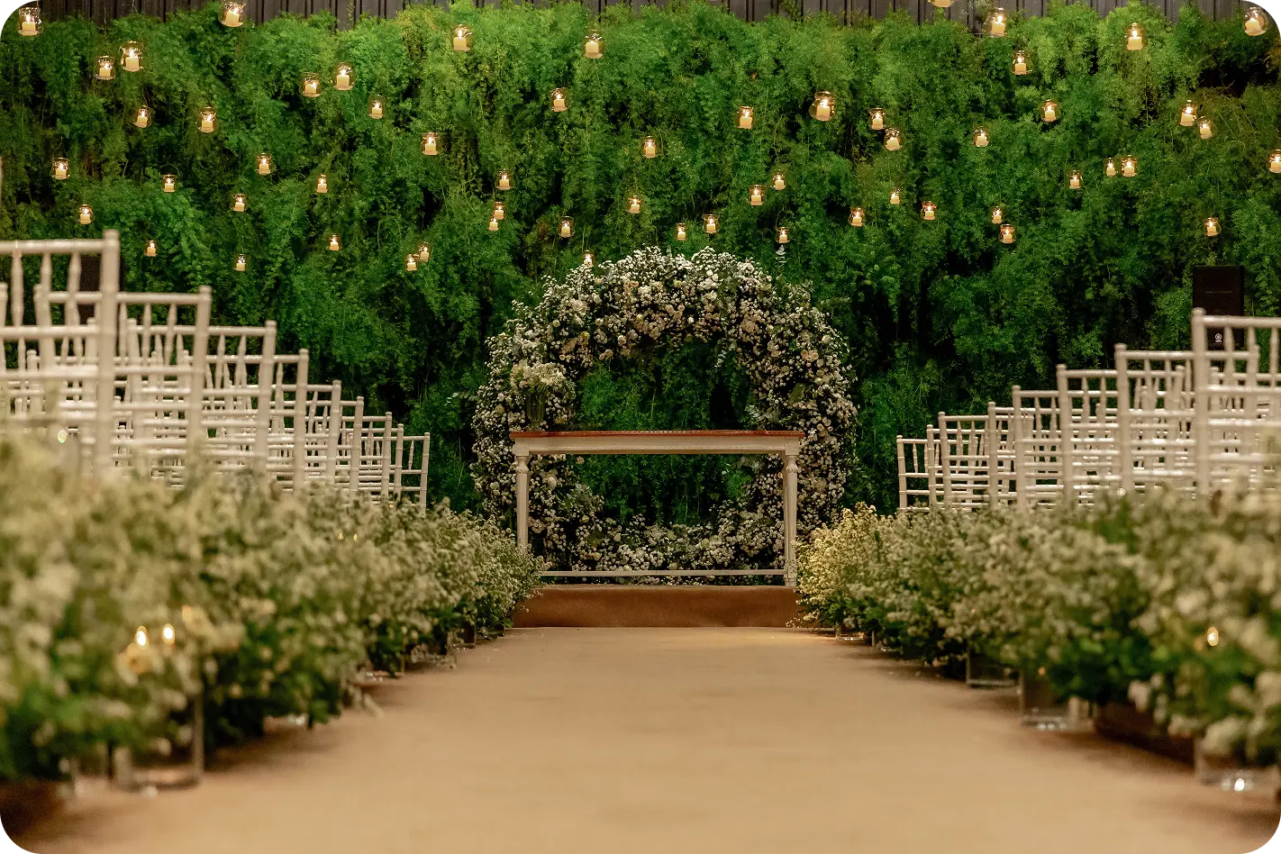 Oferecemos soluções sob medida para casamentos de todos os estilos. Da curadoria de fornecedores à decoração personalizada, nosso time cuida de cada detalhe. Nossos serviços foram pensados para dar tranquilidade e segurança em todas as etapas do casamento.