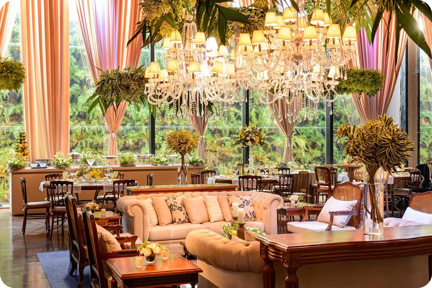 - Ambientes que se transformam para cada celebração, com estrutura completa para cerimônias e recepções.