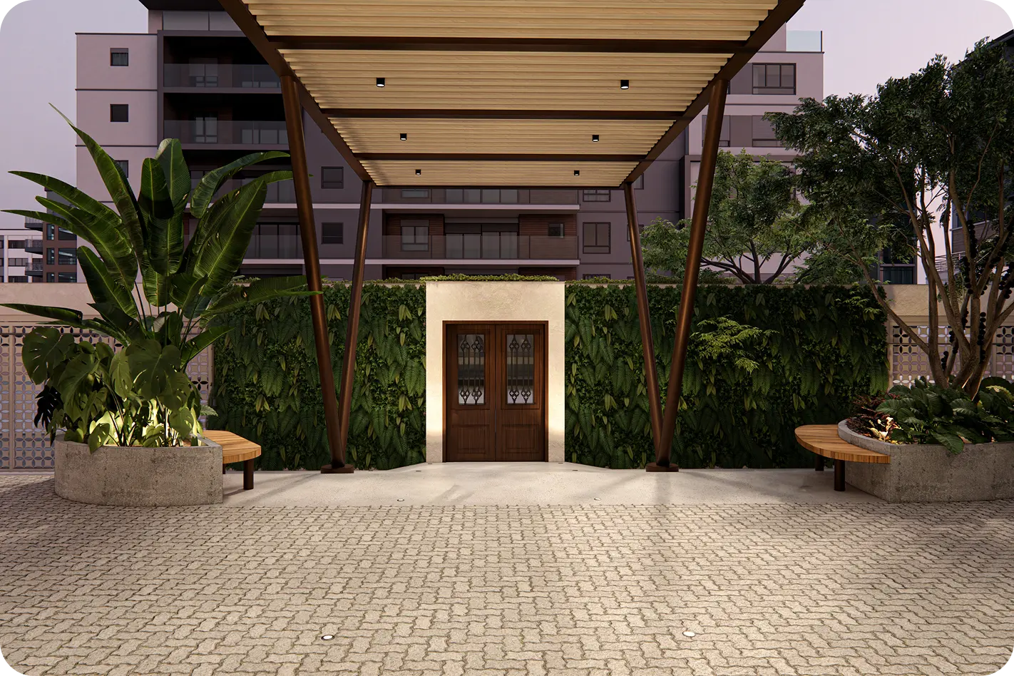 - Teto de vidro que valoriza a luz natural e cria um clima sofisticado.